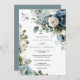 Este convite para o casamento de eternos apresenta um delicado buquê de aquarela de hífenes azuis, rosas de marfim, eucalipto verde macio e flores de jardim de marinhos. Os acentos florais enquadram o layout com equilíbrio e sofisticação, enquanto o elegante conjunto de fontes serif e script mantém o aspecto clássico e refinado. Ideal para casamentos de outono ou primavera com um tema de tom legal ou jardim. Coordena-se perfeitamente com locais exteriores, vinhedos ou rurais.