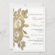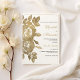 Um elegante convite de casamento elegante, branco luxuoso e flores douradas. Este convite para o casamento floral de ouro na moda é perfeito para qualquer garota chique clássica e sofisticada. Este design é ideal para um evento de tendências e na moda. Personalize este design com sua própria mensagem e informações personalizadas. Todas as designs são impressas.