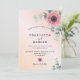 Um fundo rosa dourado e cinza rosa-claro. Decorados com girassóis cor-de-rosa, flores e verde de eucalipto. Personalize e adicione seus nomes e detalhes do casamento. Letras negras. Traseira: Rosa dourado, fundo cor-de-rosa pincelado.