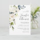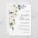 Com um popular esquema de cores neutro, este design de convite para o casamento apresenta um buquê em cascata de florais brancos de aquarela com verde à direita. As flores incluem rosas, híbridos e flores misturadas que combinam um efeito adorável. Os emparelhamentos de texto usados neste design apresentam os nomes da noiva e do noivo com destaque usando uma face de tipo manuscrito emparelhada com uma face moderna do tipo sans-serif. Personalize o modelo de texto fácil de usar com seus detalhes de casamento.