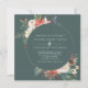 Apresentando dois buquês festivos de cor de água floral e de morango em branco, verde e vermelho atrás de um quadro circular, num fundo verde de sábio e num texto branco contrastante, este convite é perfeito para o seu casamento no inverno. O inverso está em marsala sólida/burgundy.