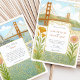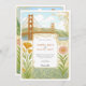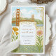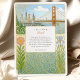 Capturar o romance da cidade pela baía com este belo convite de casamento inspirado no Art Nouveau. Este design único apresenta uma ilustração perfeitamente detalhada da icônica ponte Ouro Gate e da linha do horizonte de São Francisco, moldada por elegantes e giradores motivos florais. Delicar as papoilas, os irlandeses e outros botânicos acrescentam um toque de beleza e cor naturais. A estética do vintage, do livro de histórias, o torna perfeito para um sofisticado casamento urbano ou para casais que compartilham uma conexão especial com a Califórnia Norte. O verso oferece um espaço coordenado para "Os detalhes mais finos", garantindo que seus convidados tenham todas as informações necessárias. Todo texto é totalmente personalizável para refletir os detalhes do seu dia especial.