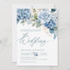 Hydrangea Moderna Script Floral Azul Convites De Casamento Floral.