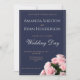 Elegante Buquê Rosa Rosa, Rosa, Convite Floral Para Casamento. Este convite de casamento floral moderno é excelente de convidar seus convidados. Um convite elegante com um belo buquê rosa rosa rosa. O fundo é azul escuro da meia-noite. O texto é um roteiro branco moderno. Você pode personalizar facilmente todo o texto - personalizá-lo com o nome da noiva, o nome do noivo, a data e hora, o local e alterar ou apagar qualquer texto do convite.