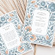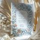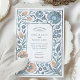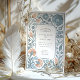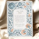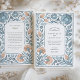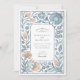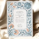 Convide seus convidados para comemorar seu dia especial com este belo convite para o casamento, com uma fronteira floral impressionante inspirada pela arte tradicional Iznik ou Ottomana. A trabalho de arte apresenta uma mistura harmoniosa de flores estilizadas e folhagem em uma sofisticada paleta colorida. São destacadas as grandes flores azuis, poeirentas e poeirentas, que se assemelham a cravos estilizados ou a crisântemos, e grandes flores semelhantes em um pêssego suave, mudo ou matiz de damasco. Estas são complementadas por elegantes e finos pessegueiros/flores de tulipas de damasco e aglomerados de flores menores, encantadoras e azuis, semelhantes a margaridas. O intrincado design apresenta folhas e caules de cinza azul, que se curvam graciosamente, que criam um quadro luxuoso ao redor do painel central de texto. Com uma textura sutil que evoca azulejos cerâmicos pintados à mão ou impressões botânicos antigos, esse convite é perfeito para casais que buscam uma estética artística, elegante e eterno com um toque de encanto histórico. O verso oferece "Os Detalhes Mais Finos" para informações adicionais sobre convidados, enquadrado pelos mesmos lindos motivos florais.
