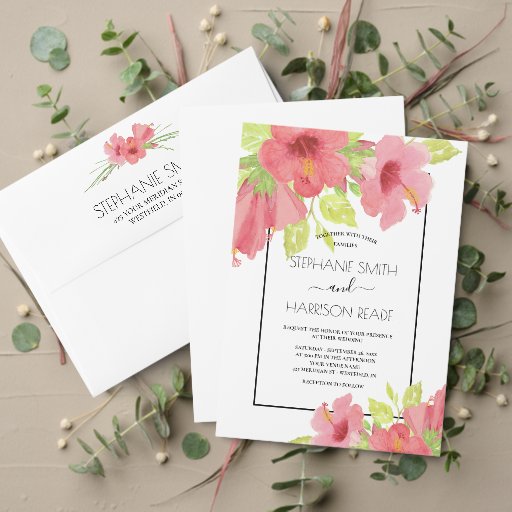 Convites Casamento Floral do Hibiscus Watercolor Rosa