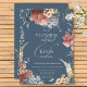 Elegância e simplicidade, com um toque de romance torna este convite de casamento único. Um fundo azul-lacre macio coloca o palco neste convite, cercado por um belo quadro floral de cor-de-rosa poeirento, creme, amarelo-pálido e chato. Criado pela imprensa simplesmente de farmácia.