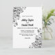 Este elegante convite de casamento preto e branco é perfeito para um casamento floral moderno. O simples design apresenta decorações florais pretas com tipografia preta elegante sobre fundo branco.