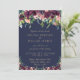 Convites Casamento Floral Dourado Azul com Borgonha Marinho