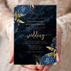 Convites Casamento Floral Dourado Azul-Marinho Elegante