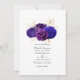 Vintage convite de casamento floral real, azul e roxo, com sotaques de ouro personalizáveis para suas especificidades de evento. Ideal para qualquer tema ou casamento de jardim. O código QR no verso direciona para o seu local de casamento onde o pessoas pode aprender mais e rsvp.