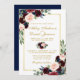 Convites Casamento Floral Dourado com Borgonha Azul