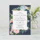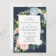 Marinho Rustic Watercolor Blush Dourado Convite De Casamento Floral. Buquê de flores azuis e roscas do Marinho com destaque Dourado