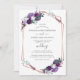 Flores roxas elegantes, rosa de ouro geométrico convite floral para casamento que você pode personalizar facilmente com seus detalhes clicando no botão "Personalizar". Apresenta a tipografia popular moderna com texto de script a preto sobre fundo branco DICA: produtos correspondentes disponíveis abaixo para sua conveniência