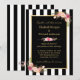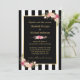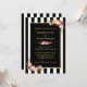 Convites Casamento Floral Dourado com Stripes Brancas Negra