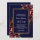 Convites Casamento Floral Dourado da Borgonha marinho Azul