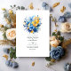 Convite de casamento floral azul elementar com sotaque de ouro. Ideal para um casamento no jardim. O código QR no verso direciona para o seu local de casamento onde o pessoas pode aprender mais e rsvp.