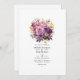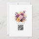 Convite de casamento floral em roxo e ouro. O código QR no verso direciona para o seu local de casamento onde o pessoas pode aprender mais e rsvp.