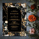 Convide seus amigos e entes queridos para o seu casamento para testemunhar e celebrar o início de sua jornada ao longo da vida com este convite que apresenta um elegante creme e spray floral preto com folhas de ouro sobre fundo de mármore preto e dourado. O texto personalizável permite adicionar sem esforço seus nomes, data de casamento e os detalhes necessários de sua celebração. Vários tipos de papel e estilos de canto estão disponíveis para seus convites exclusivos, juntamente com a opção de download.