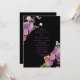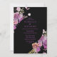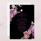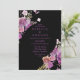 Um convite de casamento impressionante, este design apresenta flores de aquarela roxas em fundo preto. O texto é escrito em caracteres roxos. Use as modelos para criar seus convites de casamento hoje!