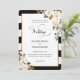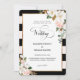 Design moderno e elegante imprimiu Roteiro Romântico Branco e Cor-de-rosa Esbranquiçada Magnésia Floral Black Blush Stripes e Dourado Convite para Casamento de Frame Glitter que pode ser personalizado com seu texto. Clique no botão "Personalizar" e use nossa ferramenta design para modificar este modelo. Veja a Design de Arte Gráfica para outros produtos que combinam com este design!