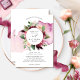 Aprecie seus convidados com este belo convite botânico mostrando seus nomes com delicada mancha aquática em cascata atrás de um belo buquê floral com flores em uma bela mistura de morango, burgundy, blush e tons de rosa. Moldura circular com detalhes falsos de ouro rosa. Mancha de aquarela em bagas, borboletas e matizes escamosos. O cartão elegante voltou com mancha aquosa e detalhe floral como a frente. Parte da nossa coleção "Romance Floral" com uma variedade de produtos de coordenação disponíveis. Visite a coleção completa clicando no link abaixo "Outros produtos desta coleção".