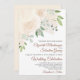 Este belo convite de casamento para blush de champanhe apresenta um monte de rosas de aquarela pintados manualmente e flores em tons de marfim, creme, e pêssego muito pálido. A design de botânica do jardim inclui prigos de folhas de eucalipto e verde. O texto justifica-se com razão, dando ao convite uma sensação moderna, mas a tipografia apresenta caracteres clássicos de escrita. Elegante, rústico e bonito, este convite é uma maneira maravilhosa de pedir aos seus amigos e familiares para partilharem a vossa alegria no vosso dia especial.