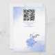 Azul hydrangeas elegante modelo de convite para casamento em arco floral em um único convite para download instantâneo com QR RSVP no verso, flores botânicas de aquarela, fundo azul claro de aquarela.