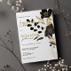 Convites de casamento florais de preto, branco e ouro elegantes. Este simples e elegante convite floral a preto e ouro é perfeito para qualquer garota clássica e sofisticada. Este design é ideal para um evento de festa moderno e elegante. Personalize este design com sua mensagem e informações personalizadas. Todas as designs são impressas