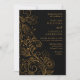 Este elegante convite para o casamento apresenta um delicado design floral ornamental com flores, pássaros e folhas sobre fundo preto e ouro. O texto combina o script manuscrito e as fontes serif para uma aparência na moda e moderna.