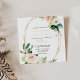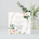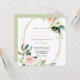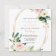 Este convite de casamento floral elegante e verde-ouro é perfeito para um casamento rústico. O design apresenta rosas brancos, cor-de-rosa e pincéis pintados à mão e um toque de verde, adoráveis quadros geométricos de ouro, inspirando beleza artística.