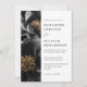 Este convite de casamento floral preto e dourado pode ser personalizado com sua informação em tipografia moderna e os detalhes do seu site de casamento no verso. Criado por Thisisnotme©