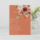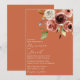 O Elegante Convite Floral Terracotta é uma sofisticada obra-prima concebida para captar a essência de um casamento no inverno com um toque de elegância eterno. Este convite meticulosamente trabalhado combina perfeitamente os motivos florais, a tipografia elegante e uma paleta de cores ricas para criar uma impressionante primeira impressão para qualquer dia especial da noiva moderna. A cor dominante do terracota dá o tom para uma atmosfera quente e convidativa, complementando perfeitamente o tema do casamento outono. Esta matiz da terra simboliza estabilidade e fundação, criando um senso de calor que ressoa com a confortável ambição das celebrações do inverno. O pano de fundo do terracotta serve como canvas para delicadas flores de aquarela, acrescentando um toque de feminilidade e romance ao design geral. Os elementos florais assumem o palco central, apresentando representações intrincadas de flores de inverno que acrescentam um talento sazonal. Rosas deliciosos, peônias beijadas pela geada, e verde assado pela neve são arranjados de forma artística, criando uma sinfonia visual que espelha a beleza natural da paisagem de inverno. A técnica de aquarela dá aos florais uma qualidade sonhadora e etérea, evocando um senso de capricho e encanto. O design formal do convite é acentuado pela tipografia elegante, com fontes cuidadosamente escolhidas que exudem sofisticação. A escrita clássica e a escrita em eterno transmitem uma sensação de formalidade, garantindo que o convite dá o tom para uma celebração refinada e em alta escala. O layout é cuidadosamente organizado, equilibrando os elementos visuais para criar uma composição harmoniosa e esteticamente agradável. Em resumo, o Convite Floral Elegante Terracotta para Casamento é uma mistura cativante de romance de inverno, elegância floral e sofisticação do eterno. A paleta colorida de terracota, os florais de aquarela e os elementos de design formal se juntam perfeitamente para criar um convite que não só é visualmente atordoante, como também é perfeitamente adaptado ao desejo da noiva moderna de um casamento que seja ao mesmo tempo sobre tema e sem esforço.