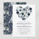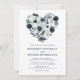 Convites de casamento personalizados em azul naval e azul poeirado com um fundo branco na moda que pode ser alterado para qualquer cor, um coração de flor de aquarela azul rústico e um modelo de casamento moderno.