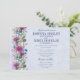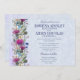 Convites de casamento escoceses com um tema floral adorável. Destaque-se o magenta Thistle, flor oficial da Escócia, com margaridas, nãos-esqueço, mar azul sagrado e outros florais. Borboleta e Dragonfly pairam na fronteira. Plano de fundo de textura macio em frente e atrás em azul claro com destaque magenta na borda. Outros itens correspondentes estão disponíveis neste tema de Casamento Escocês encantador.