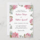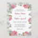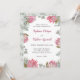 Estes convites para casamentos de aquarelas apresentam flores de proteína rosa, folhagem e folhas de eucalipto. Personalize-os com o seu próprio texto.