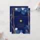Design apresenta um elemento floral colorido impresso em tons de marinho, azul e ouro. Texturas de canvas marinho e azul com borboleta dourada falso e floração de pedras com script de caligrafia dourada ou escrevendo tipo. Excelente para as comemorações do casamento!