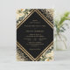 Convite de casamento floral preto, marfim e dourado elegante com detalhes do casamento dentro de uma moldura geométrica dourada e adornado com rosas de marfim/creme e confetes dourados. Itens correspondentes disponíveis.