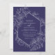 A cor elegante e o design geométrico tornam este convite espantoso. Esta design apresenta um fundo roxo dramático, um lindo esboço botânico floral desenhado, e tipografia personalizada com uma borda geométrica na frente. O verso apresenta uma lindíssima tapeçaria floral.