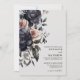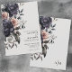 Convite de casamento floral Dark Gothic Fall perfeito para outono, inverno ou qualquer momento em que você queira um visual escuro e elegante. Uma mistura de rosas pretas e uma flor cor de rosa ou pêssego e algumas folhagens cinza escuro e verde. Um visual botânico escuro e moderno para um casamento elegante. Uma mistura de fontes serifadas clássicas simples e uma bela tipografia cursiva torna isso ao mesmo tempo elegante e moderno. Você pode alterar todas as cores da fonte, bem como as cores do fundo, se quiser mudar completamente o visual. No verso, há um monograma inicial simples. Convite de Casamento Floral Till Death Do Us Part Elegante Moderno Vintage Preto e Branco Arco Floral.