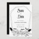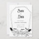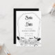 Aceite o encantamento com este Casamento Gótico Salve o Convite de Data, perfeito para um casamento de Halloween. Esta design moderna e elegante combina uma estética boho-escura com uma vibração mórbida e assustadora, capturando a essência de uma celebração de outubro. Intrajado com teias de morcegos e aranhas, ao lado de delicados elementos florais, esse convite apresenta uma paleta de cores preto-e-branco impressionante. Ponha o tom para o seu dia especial com uma combinação única de assombração da beleza e da elegância do eterno.