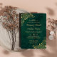Convite Floral Islâmico Real Emerald Green Dourado. Este belo convite para o casamento, banhado num pano de fundo verde esmeralda, exumenta um ar de sofisticação. Delicar os florais de ouro adornam os cantos, acrescentando um toque de opulência. O convite apresenta uma elegante caligrafia ouro, começando com a invocação sagrada "Bismillah", seguida dos intrincados detalhes da celebração do casamento. O reverso ecoa o mesmo tema, mostrando um monograma cativante dos nomes dos casais. Este convite combina perfeitamente as tradições islâmicas com um toque de talento internacional, fazer-o de uma manutenção verdadeiramente única e inesquecível para este casamento trinacional.