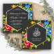 Convide seus convidados com este elegante convite de casamento que inclui uma camada única de quadros hexágonos e o 'Bismillah' na caligrafia árabe em um belo fundo de buquê floral. Basta adicionar os detalhes do seu evento neste modelo fácil de usar para torná-lo um convite de tipo único.