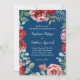 Estes convites para o casamento apresentam flores borboletas e folhagem verde num fundo azul marinho. Personalize-os com o seu próprio texto.