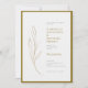Este convite elegante de casamento apresenta um design simples, mas espantoso. Os sotaques dourados acrescentam um toque de luxo enquanto mantêm uma estética limpa e moderna. O design floral subestimado é perfeito para um casamento sofisticado e na moda, permitindo que seus detalhes pessoais levem o palco central. Personalize com seus nomes e detalhes de casamento para criar um convite especial para seus convidados. Este cartão é mais do que apenas um convite, é um reflexo do seu estilo e celebração únicos. Faça uma impressão duradoura em seus convidados com este convite de casamento maravilhosamente projetado.
