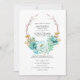 Convite de casamento floral de mint pastel de ornamentado com sotaque de ouro personalizável para seus detalhes de evento.