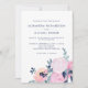 Este convite para casamento de na moda e tendências apresenta aquarela com aspecto rosa-claro e marinho e flores e folhas azuis. Usamos arte de LABFcreations.