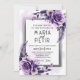 Convites Casamento Floral Moderno, Elegante Roxo e Prata