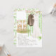 Os Convidados Florais Modernos Rustic Outdoor Watercolor Contém um terno de aquarela na moda e um vestido de noiva pendurados para o casamento com cadeiras de hóspedes, realçadas com flores cor-de-rosa, brancas e verdes em fundo branco. Personalizado editando o texto nas caixas de texto fornecidas. Elaborado por ©Evco Studio www.zazzle.com/store/evcostudio