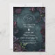 Um design dramático e elegante perfeito para casais planejando um casamento romântico. Apresentando florais profundos em tom de joia contra um pano de fundo texturizado, esta estética evoca mistério, intimidade e amor ao eterno. Ideal para o outono, gótica, ou celebrações não convencionais. Personalize-o com seus nomes, data e local.